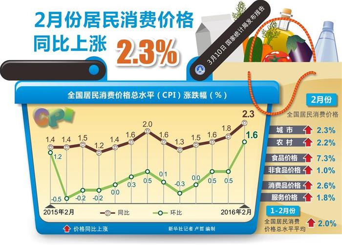 国家统计局10日发布数据,2月份全国居民消费价格总水平(CPI)同比上涨2.3%、环比上涨1.6%,涨幅比1月份分别扩大0.5和1.1个百分点,超出市场预期。业内人士认为,这主要是受异常天气和春节因素的双重影响。