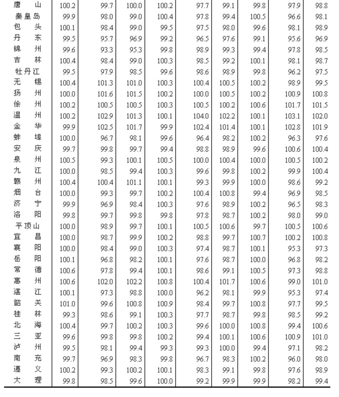 3.调查方法。70个大中城市的新建住宅销售价格、面积、金额等资料直接采用当地房地产管理部门的网签数据。二手住宅销售价格调查为非全面调查,采用重点调查和典型调查相结合的方法,按照房地产经纪机构上报、房地产管理部门提供与调查员实地采价相结合的方式收集基础数据。