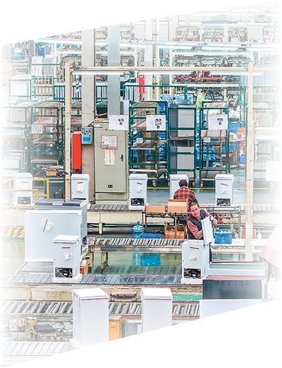 江苏省宿迁经济技术开发区江苏韩电电器有限公司智能化生产车间,工人在赶制家电订单产品。