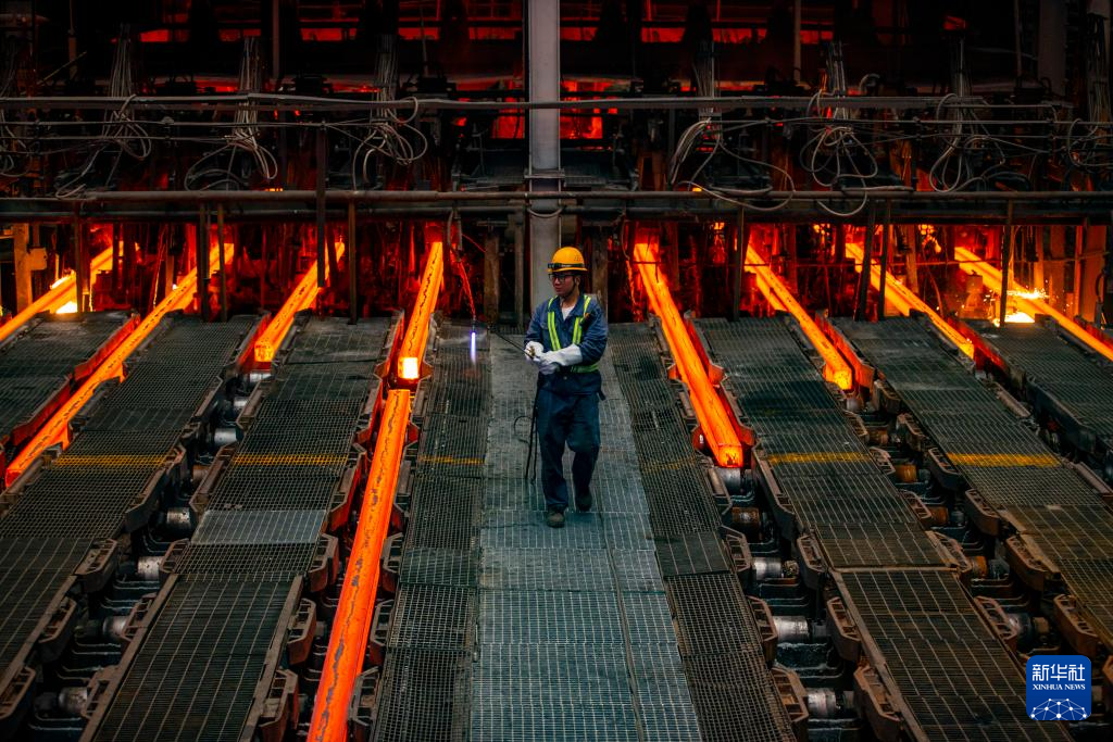工人在方大集团九江萍钢钢铁有限公司的生产车间作业(2025年4月3日摄)。新华社发(李学华摄)