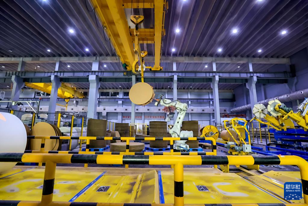 在五洲特种纸业(江西)有限公司生产车间,智能化机械设备有序生产(2024年3月21日摄)。新华社发(吴江摄)
