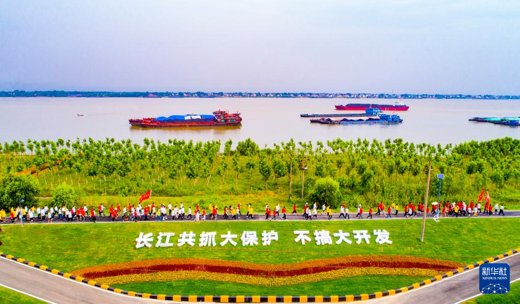 货船在长江江西湖口段江面上行驶(2019年7月1日摄)。新华社发(李学华摄)